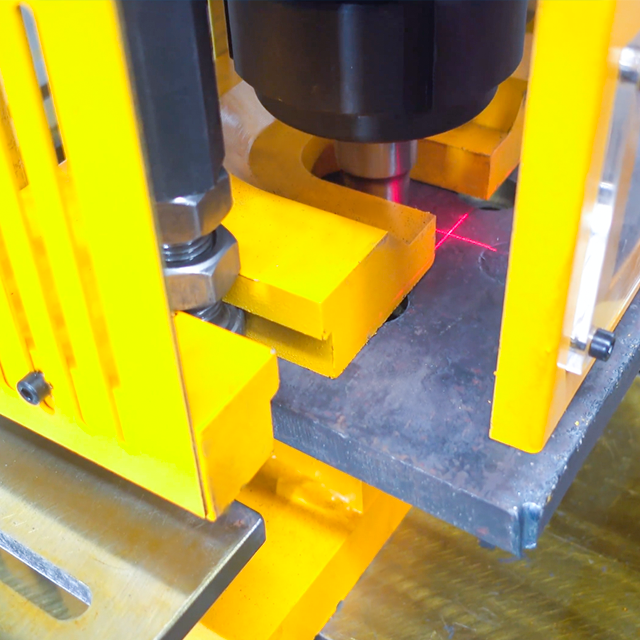 激光显中心: 开启激光,一束清晰明亮的红色(或绿色)激光点,瞬间投射在工件上,精准指示冲头中心的位置。